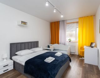 Самолетом до аэропорта Храброво, далее на автобусе № 244э до остановки «Площадь Маршала Василевского», далее на маршрутке №65 двигаться до остановки «Калужская Улица», далее 273 м до апартаментов.