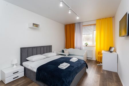 Поездом до ж/д вокзала ст. Калининград-Южный, далее пешком 540 м до остановки «Площадь Калинина», далее на автобусе №27 до остановки «Улица Лейтенанта Яналова», далее 380 м до апартаментов.